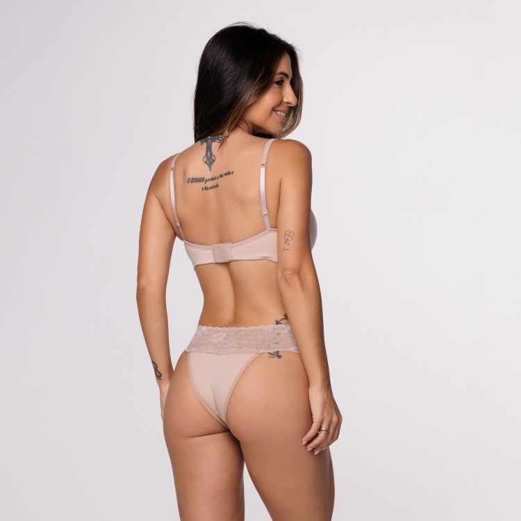 A renda delicada adiciona um toque de feminilidade, enquanto o corte tanga proporciona liberdade de movimento e discreção sob qualquer roupa. O elástico suave garante ajuste perfeito sem marcar, ideal para o dia a dia ou momentos especiais.