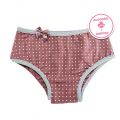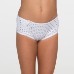 Calçinha Baby Estampada Poá na cor Verde Esmeralda em algodão egípcio com viés de elastano com poliamina. Lateral e costas maiores, modelagem super confortável.