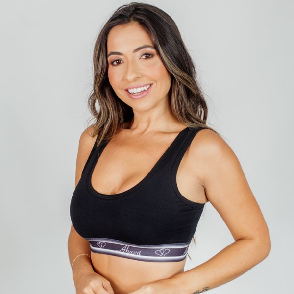 Top Duplo na cor preta, confeccionado em algodão egípcio com elástico personalizado e costas mais largas. Ideal para o seu dia a dia. Proporciona versatilidade e bem-estar. Possui um toque suave e macio, garantindo maior conforto.