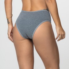 Esta calcinha na elegante cor cinza escuro destaca-se pelo delicado viés xadrez, que adiciona um toque de charme ao design clássico. O modelo oferece cobertura ideal e ajuste perfeito ao corpo, proporcionando conforto e bem-estar ao longo do dia.