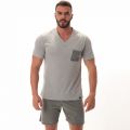 Pijama Masculino Curto com bolso Bicolor. O modelo apresenta camisa de manga curta, decote "V". O short possui cós com elástico. Perfeito para suas noites de sono!