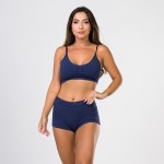 Cueca Feminina em Algodão Egípcio Marinho com renda na cintura