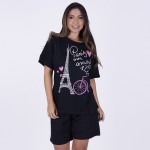 Pijama curto confeccionado em algodão e poliéster. Composto por duas peças a blusa apresenta decote em "U", mangas curtas e detalhe de estampa na parte frontal, bermuda, em modelagem básica, possui elástico e fita para amarrar. Modelo ideal para boas noites de sono! Acompanha linda necessaire.