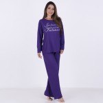 Pijama Longo em Algodão e Poliéster . Composto por duas peças, o modelo é ideal para boas noites de sono. A blusa apresenta decote em "U", mangas longas e detalhe de estampa em silk e Strass. Já a calça, em modelagem básica, possui elástico e fita para amarrar. Acompanha linda necessaire com strass.