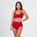 Esta calcinha Hot Pant na elegante cor rubi destaca-se pelo seu design moderno e sofisticado. O modelo apresenta cós alto, proporcionando maior cobertura e conforto, enquanto o delicado detalhe em renda adiciona um toque de feminilidade à peça.
