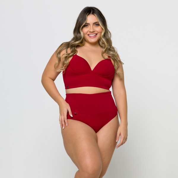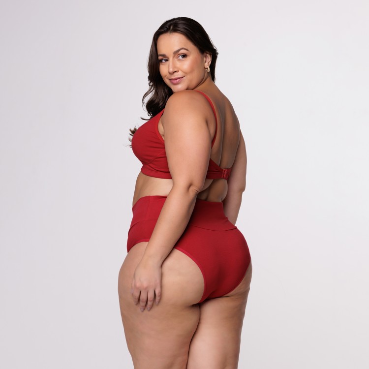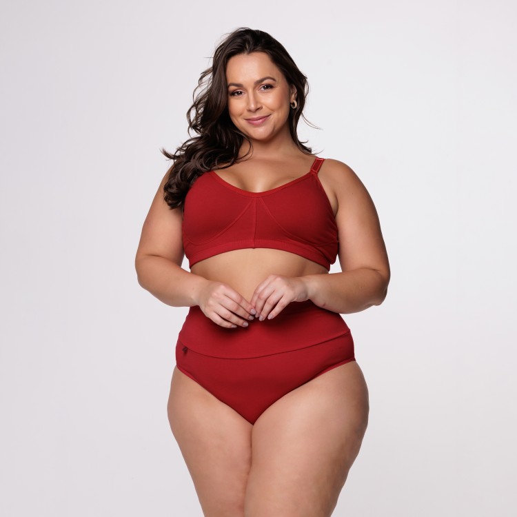 Calcinha Plus Size Cós Super Largo em Algodão Egípcio na cor Rubi