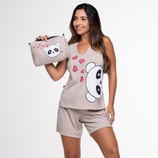 Pijama Regata em algodão cintura Sanfonado confeccionado em algodão e poliéster . O modelo apresenta camiseta regata, decote "V", estampa frontal em Silk . O short possui cós com elástico e fita para amarrar. Ideal para suas noites de sono! Acompanha linda necessaire na cor do pijama com estampa em silk igual a do pijama.