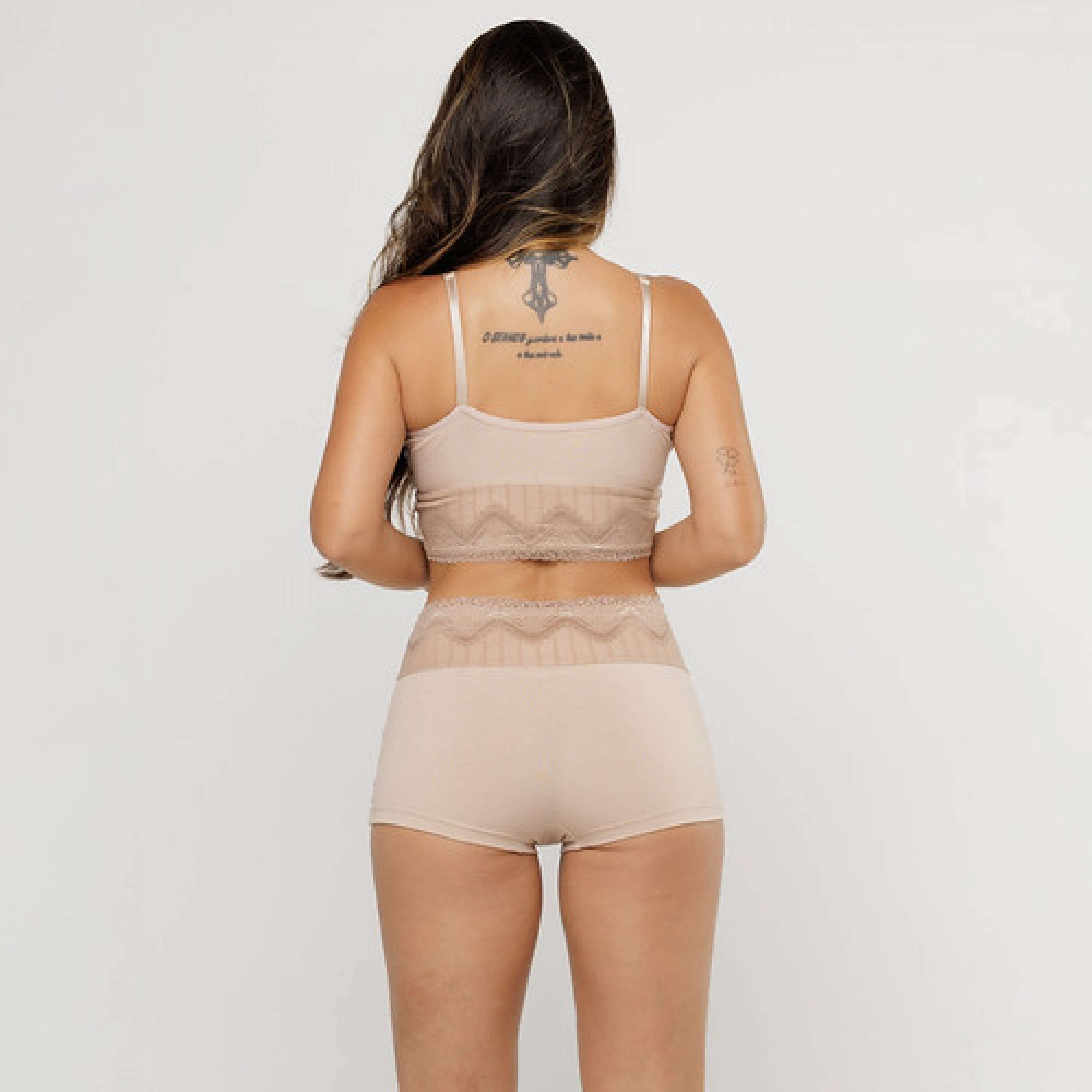 • Cueca Feminina em Algodão Egípcio Renda na Cintura Areia