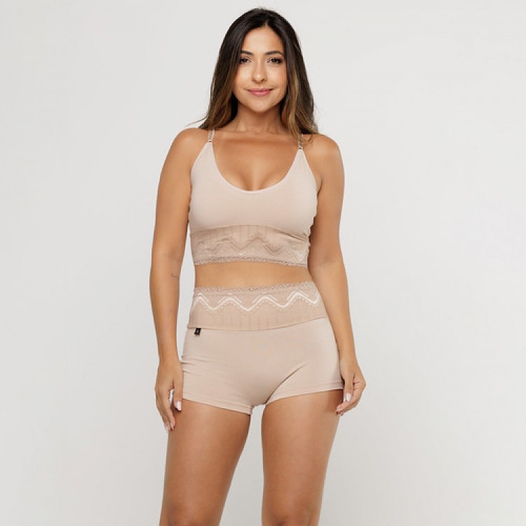 Cueca Feminina em Algodão Egípcio Renda na Cintura Areia