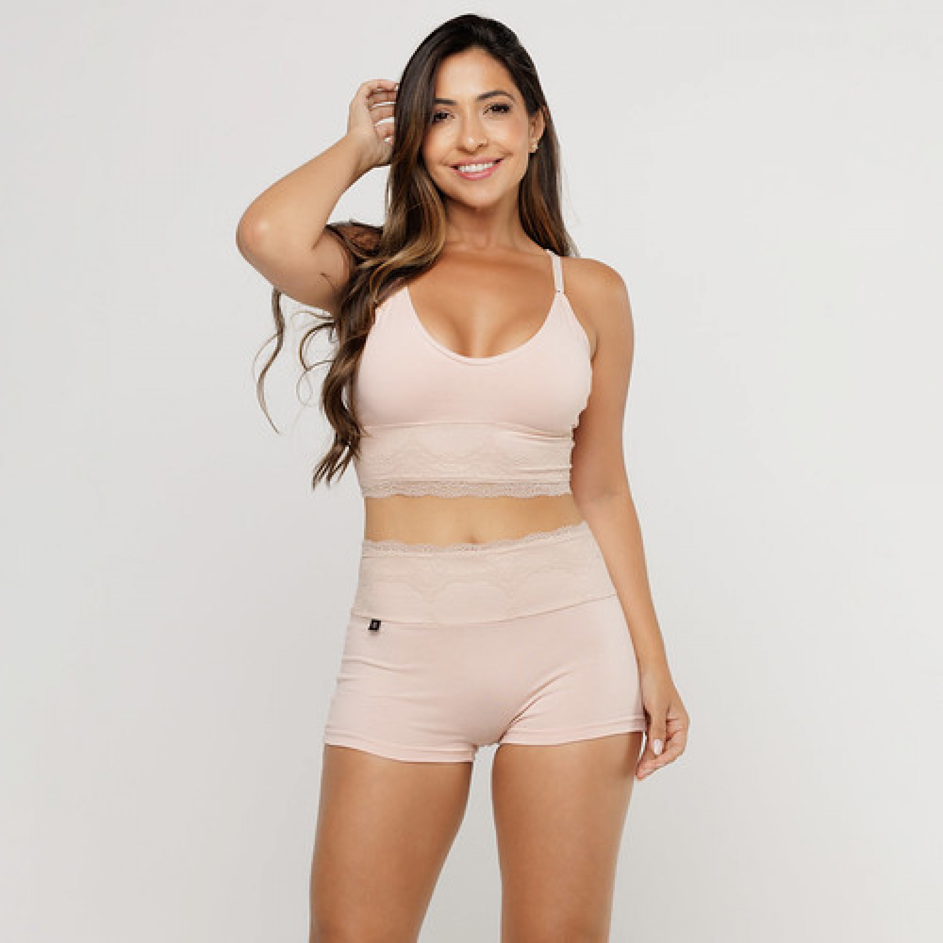 Top Duplo em Algodão Egípcio com Elástico Personalizado Nude