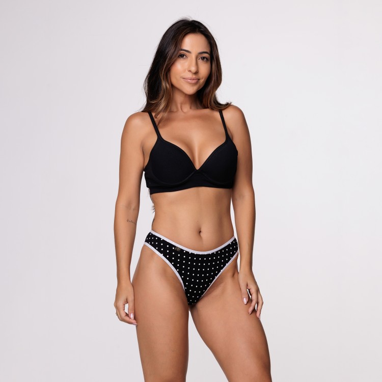Tanga na cor Preta, com estampa poá em silk e detalhe em laço. Modelagem confortável e ideal para o dia a dia. Confeccionada em algodão egípcio.