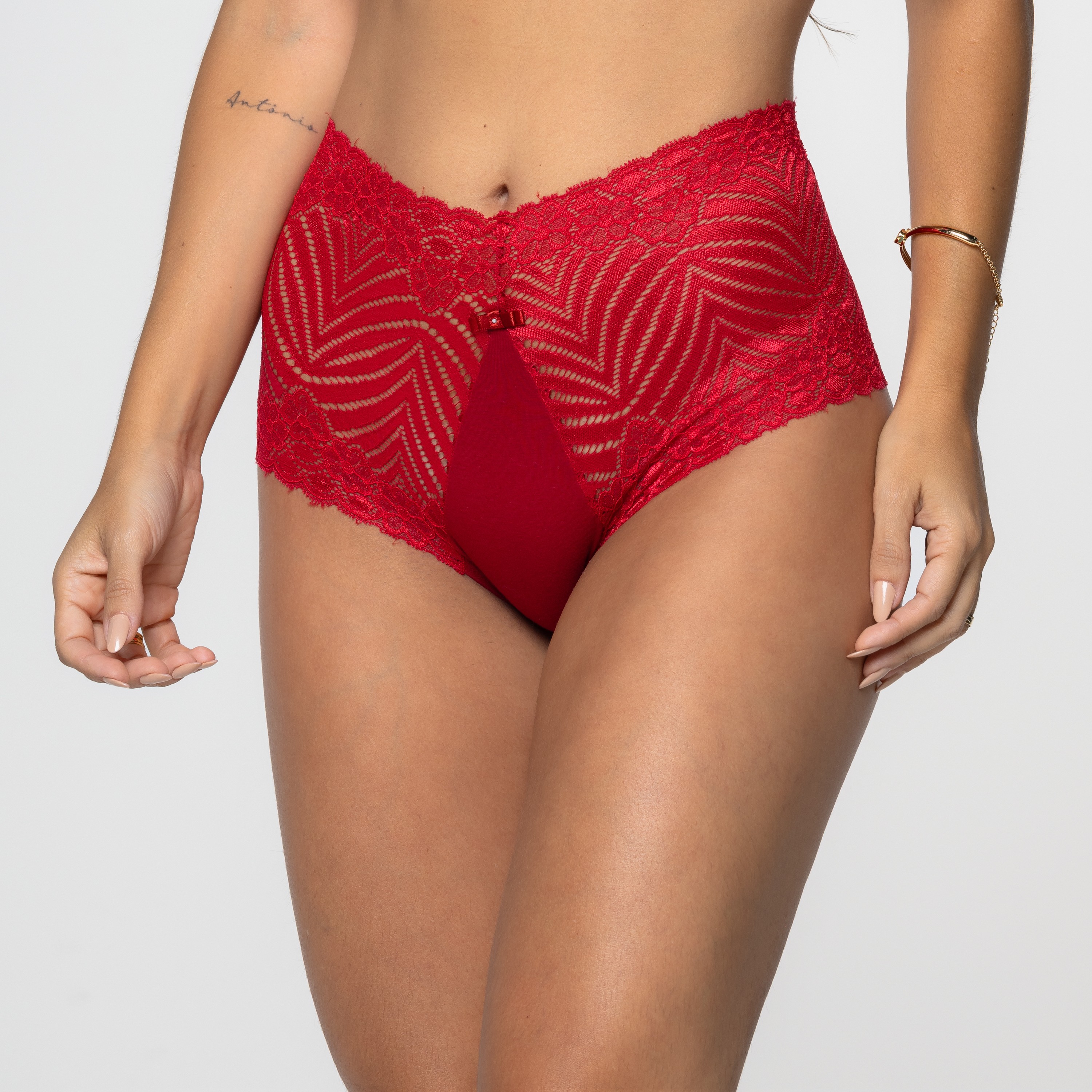 Este caleçon na elegante cor rubi destaca-se pelo seu design sofisticado e confortável. Confeccionado em algodão egípcio, proporciona um toque macio, respirabilidade e alta durabilidade, garantindo o bem-estar íntimo em todas as ocasiões. O viés em elastano e poliamida assegura um ajuste perfeito ao corpo, enquanto a delicada renda lateral e o laço com pedra na cintura adicionam um toque de feminilidade e charme à peça.